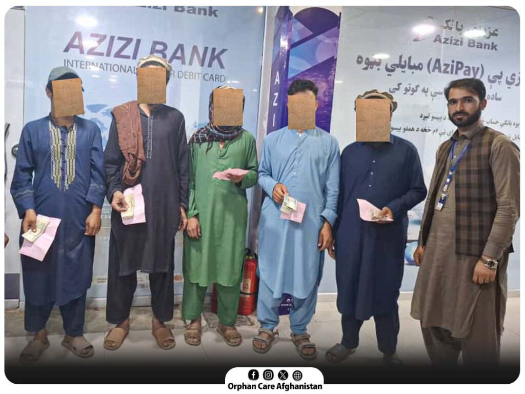 Each orphan family received USD 100 per month (equivalent in Afghanis) through bank transfers. As a result, a total of USD 5,000 was transferred every month to the accounts of these 50 families via Azizi Bank, allowing them to access the funds easily and without difficulty.